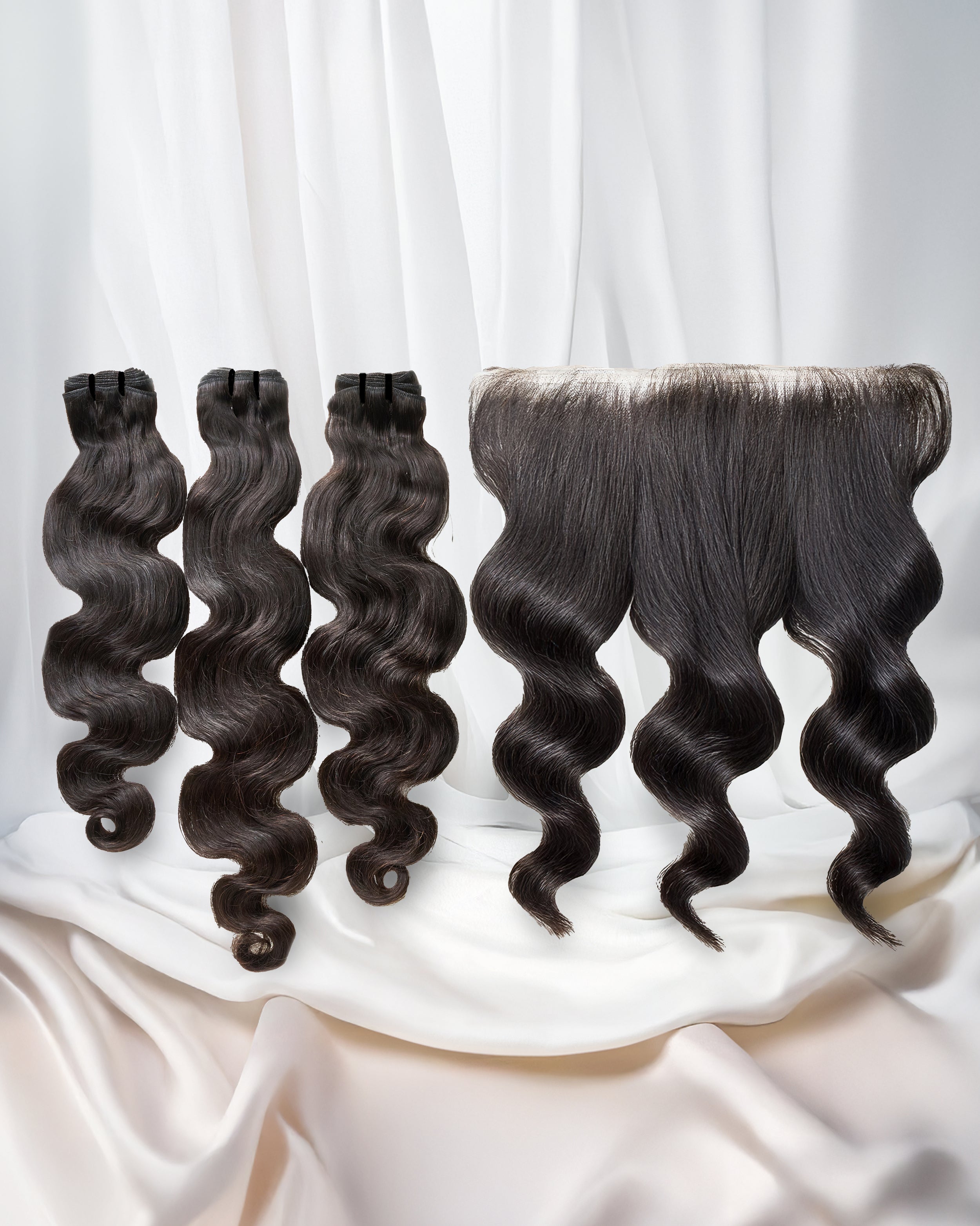 Discover our premium bundle sets, crafted from 100% Virgin Human Hair—pure, lush, and ready for every vision. Each set pairs perfectly matched bundles with a high-quality closure or frontal, giving you fullness, flow, and versatility in every install. Available in both straight and body wave, 18” to 26” lengths. Experience the standard that stylists, beauty pros, and everyday luxury lovers trust.